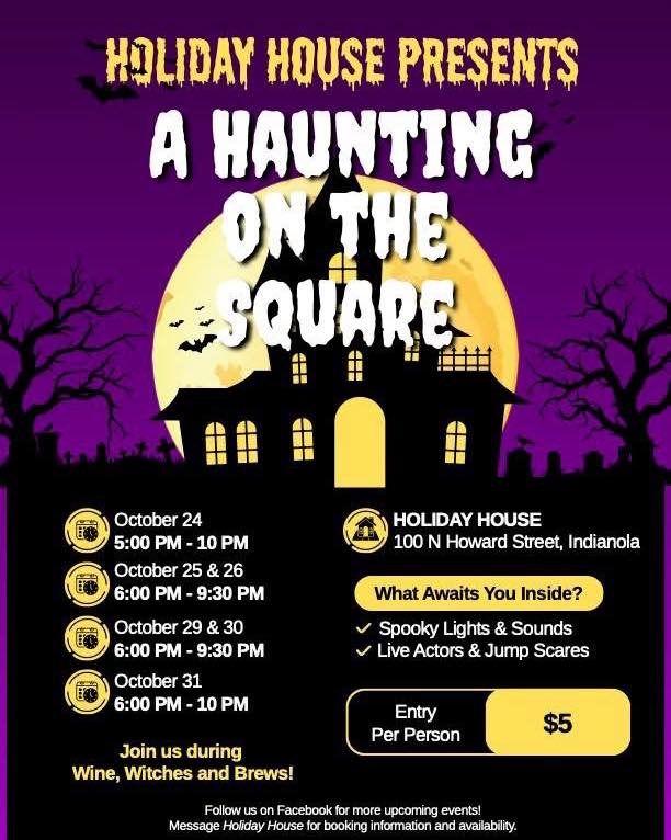 Join us for a fun and exciting haunted walk thru! Holiday House will be hosting a bit of Halloween fun beginning Friday, Oct 24th. Spooky lights, sounds, and jump scares will make for a thrilling time! Admission is $5.00 per person. 6 nights only! Oct 24 5-10 pm, Oct 25, 26, 29 & 30 6-9:30 pm, Oct 31 6-10 pm.