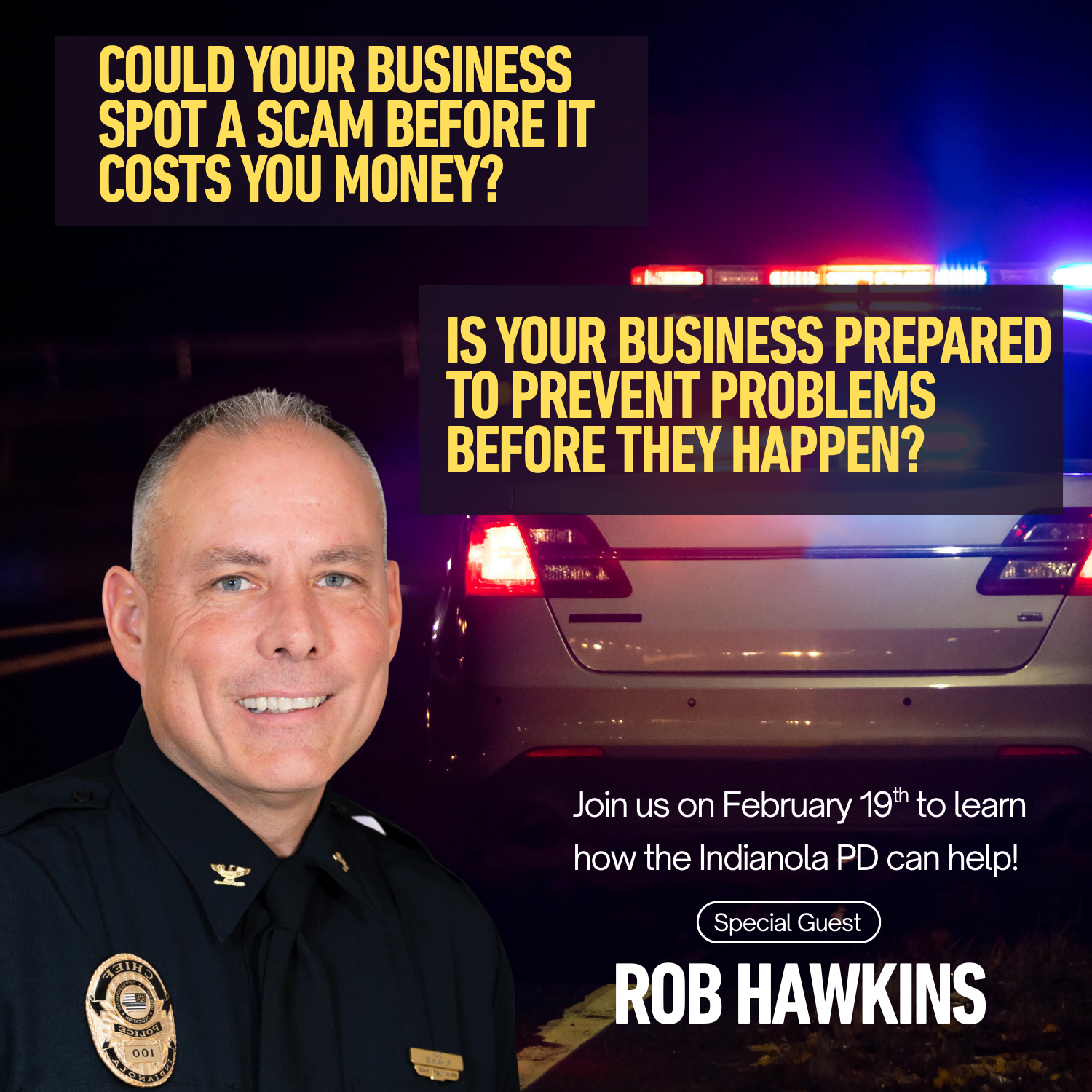 Join us for Business Safety 101 on Thursday, February 19th at 9:00 AM at Salem Connections featuring a presentation from Indianola Police Chief Rob Hawkins. This session will cover practical safety concepts to help business owners protect employees, customers, and property, along with an overview of new scams targeting businesses and steps you can take to prevent them. This is a great opportunity to ask questions, gain helpful resources, and leave with simple strategies you can use right away.